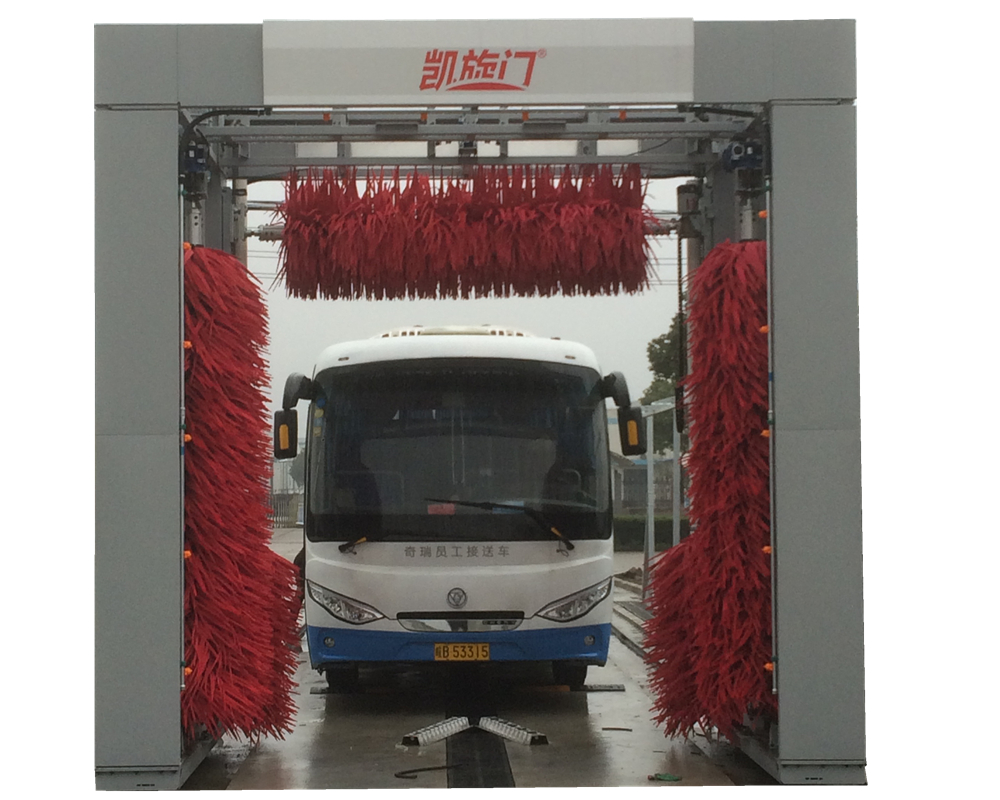 凱旋門往復式巴士洗車機AT-4500-T型通道式洗車機具有自動檢測車輛、自動刷洗車身、自動高壓清洗車輪、自動噴灑泡沫清洗液、自動噴灑亮光蠟、污水自動循環(huán)利用等基本功能。